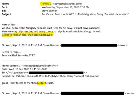 Comment: What is more disturbing is Jeffrey Epstein and Steve Bannon plotting to take down Pope Francis and working together for the purification of the Catholic Church! Yes, we are talking about the pair that prefers to reign in hell... My only conclusion is that the darkside which has historically operated in factions. are still fighting each other for supremacy. This revelation reveals a hornets nest and requires some serious investigation, but not by me! Here is an article where Steve Bannon interviews Archbishop Viganò: The globalist plot against the Church.