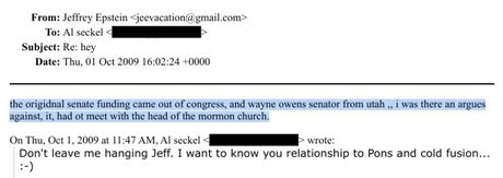 Then there is the DOJ document where Epstein boasted about supressing Cold Fusion research. In 2009, Epstein boasted: "I killed Pons years ago." That is Stanley Pons, the cold fusion researcher who made a discovery that could have given the world clean, limitless energy using water.