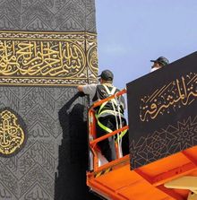 Kiswah is the black cloth covering the Kaaba. The fabric is changed every year on the 9th of Dhul hajj. The removed Kiswah would be cut into small pieces and gifted to the Muslim delegates and diplomats around the world.