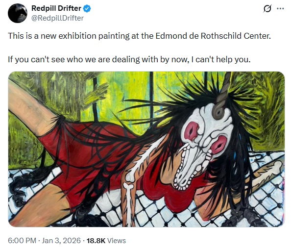 Comment: Jeffrey Epstein is back in the news.... There is something mentally wrong with the artist Rina who was Epstein's ex-girlfriend, see XTweet. I have edited this image. WARNING!! DISTURBING!! Epstein victim Virginia Giuffre's was sued for $10M by Rina Oh for publicly naming her as recruiter for Jeffrey Epstein. Here is her XTweet on this painting