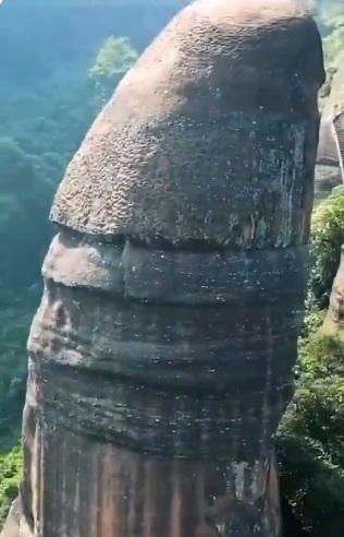 in Danxiashan (Danxia Mountain / Danxia Geopark), a UNESCO World Heritage Site in Shaoguan (Renhua County area), Guangdong Province, mainland China. Together with the adjacent Yang Yuan Stone are considered to be quite a humorous geological anomaly. Both are featured in the associated YouTube video link.