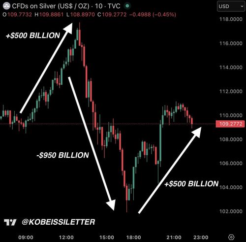 Then, between 1:00 PM ET and 4:30 PM ET, silver lost -$950 billion.