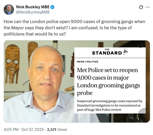 How can the London police open 9000 cases of grooming gangs when the Mayor says they don't exist? I am confused. Is he the type of politicians that would lie to us?
