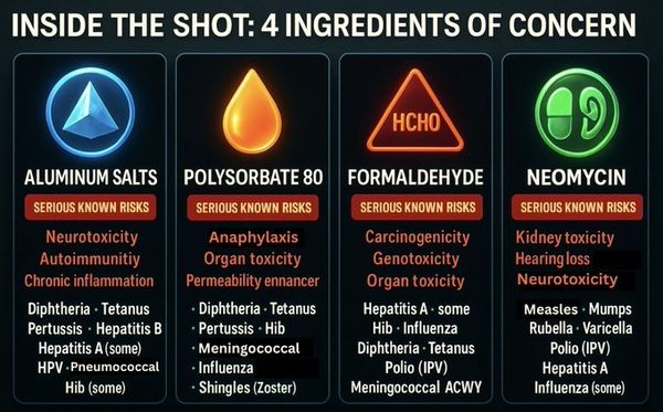 The illegal 72-dose childhood hyper-vaccination schedule is loaded with highly toxic chemicals: