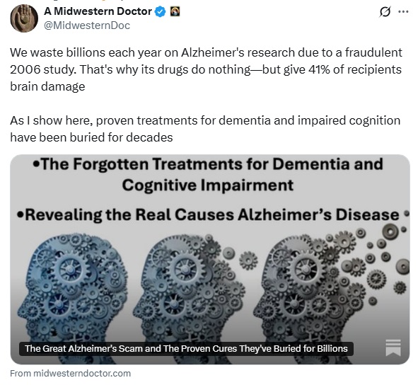 The Great Alzheimer's Scam and The Proven Cures They've Buried for Billions Decades of neglect in understanding the actual causes of dementia have transformed it into one of the most costly diseases in existence.